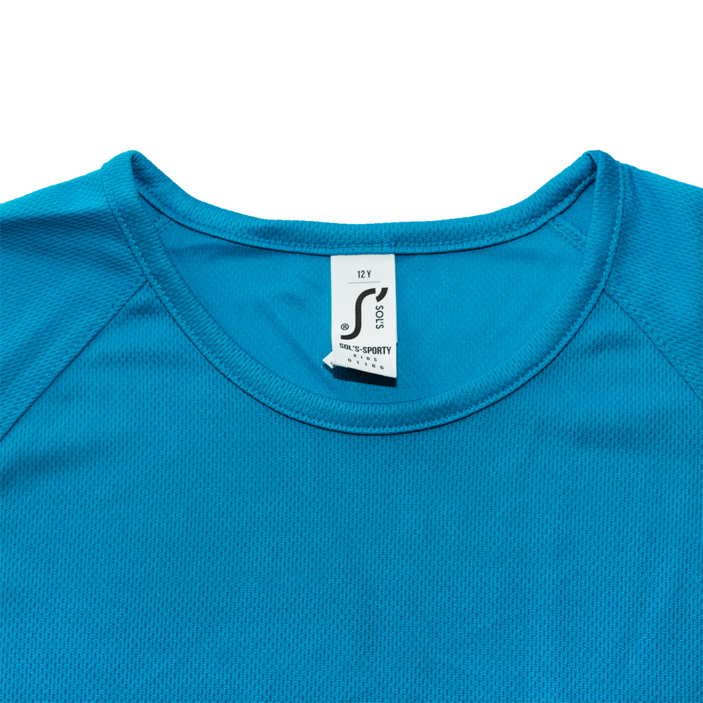 Dětské sportovní tričko s krátkým raglánovým rukávem, prodlouženým zadním dílem, s kulatým průkrčníkem a s bočními švy. Funkční materiál zajišťuje odvádění potu a udržování tělesné teploty. Tričko je vhodné na individuální sportovní trénink nebo na sportovní akci. Doporučujeme nosit tričko přímo na tělo, proto objednej raději o velikost menší.